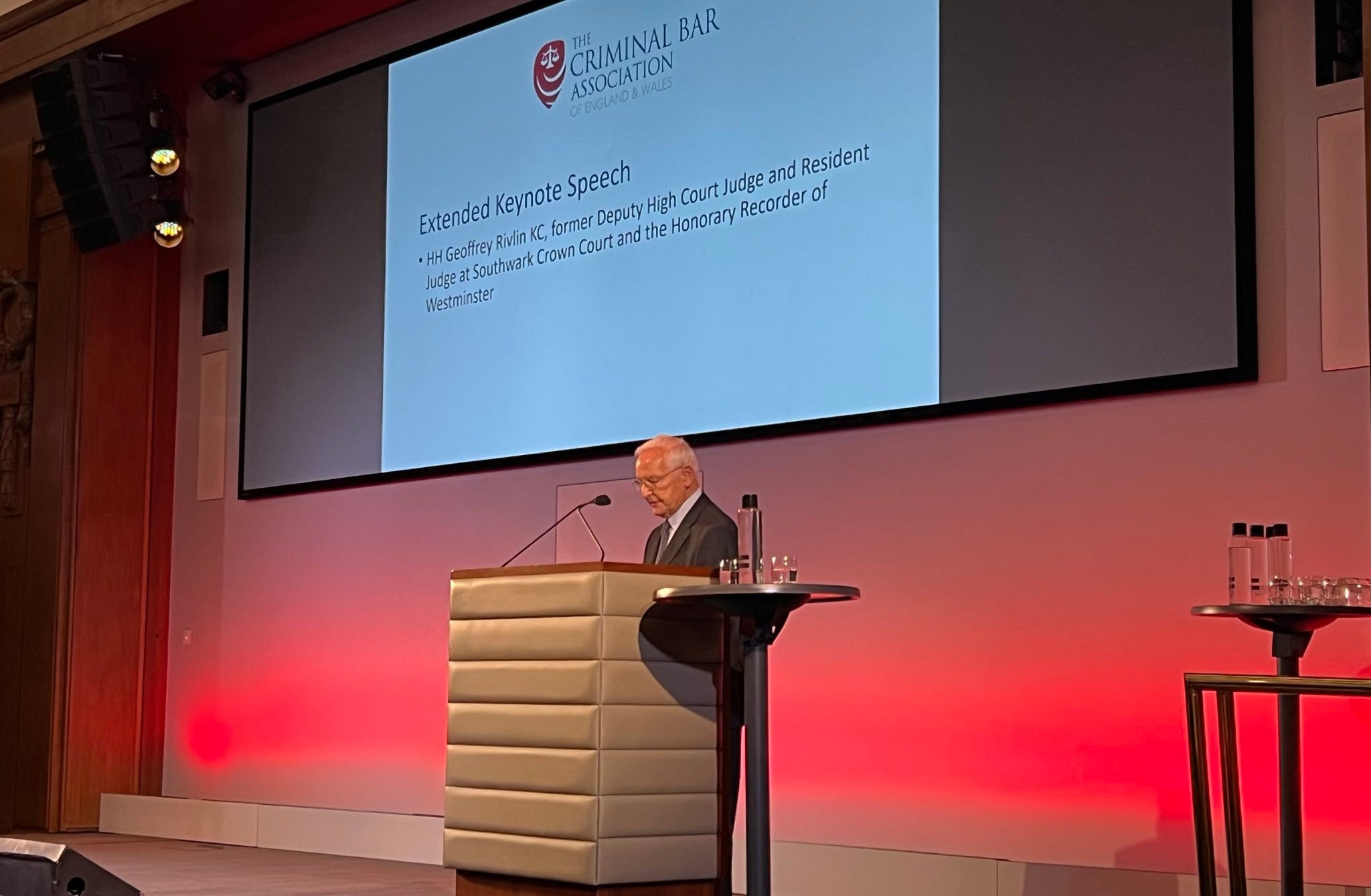 Geoffrey Rivlin KC speaking last month to the Criminal Bar Association