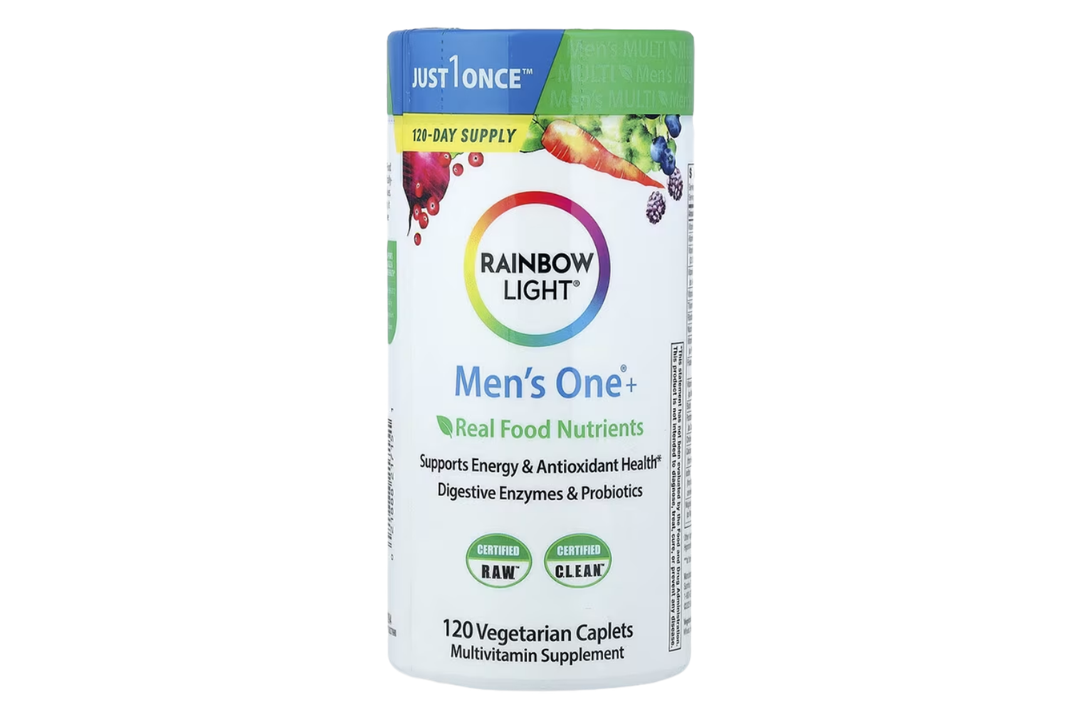 Just one capsule of Rainbow Light’s Men’s One+ Real Foods Nutrients goes well beyond minimal reference intakes, with 417 percent of your daily vitamin B12, 100 percent of zinc, plus an organic superfoods blend, ginger, enzyme and probiotic blend, and a healthy dose of ashwagandha, organic green tea extract and chlorella.