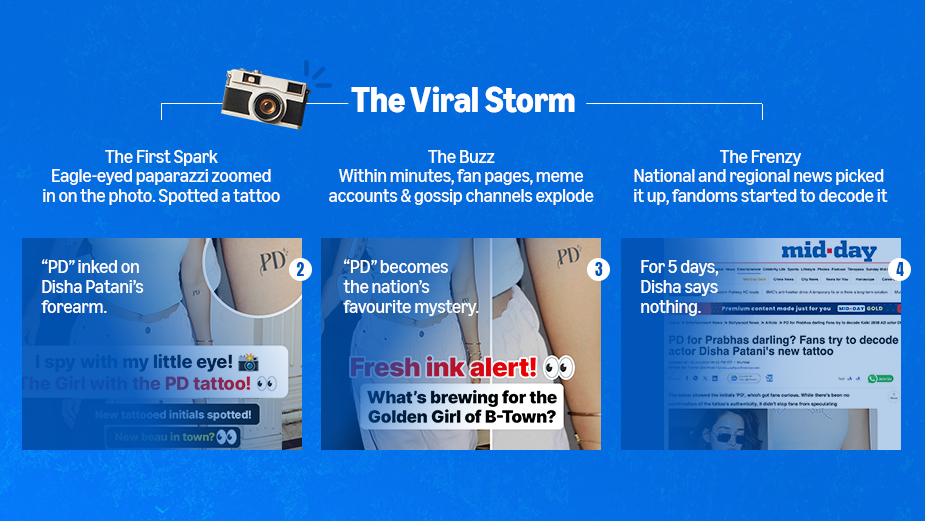 Within 24 hours of being papped, Disha’s tattoo hit the headlines, landing on top media platforms like Zoom TV, Bollywood Hungama, Hindustan Times, and News18. As gossip grew, Disha released a video to finally reveal what ‘PD’ stood for: Prime Day.